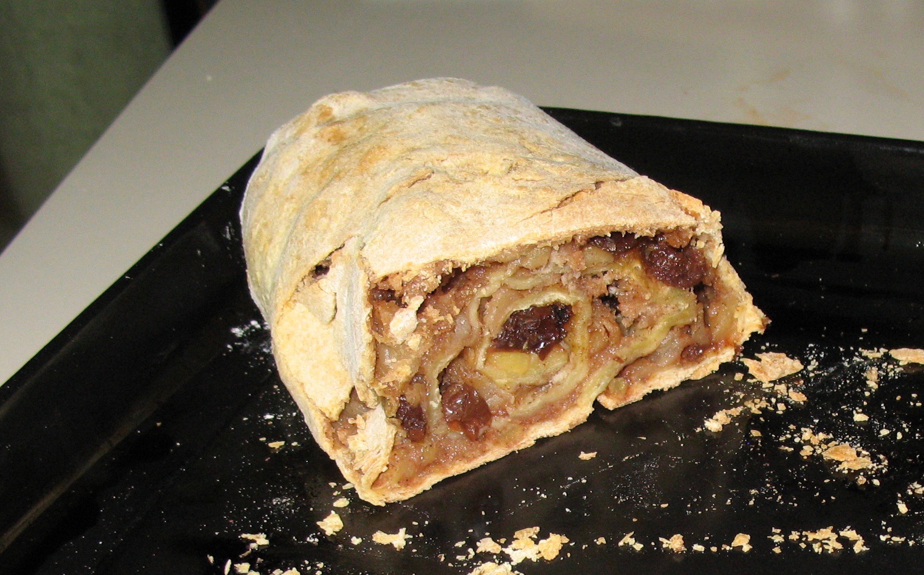 On a lightly floured surface, roll dough out as thin as possible to a square/rectangular shape. Spread the filling. Roll up loosely, jellyroll fashion. Brush with soft butter. Place on a greased baking sheet or into greased loaf pans and bake at 350 degrees F for one hour.