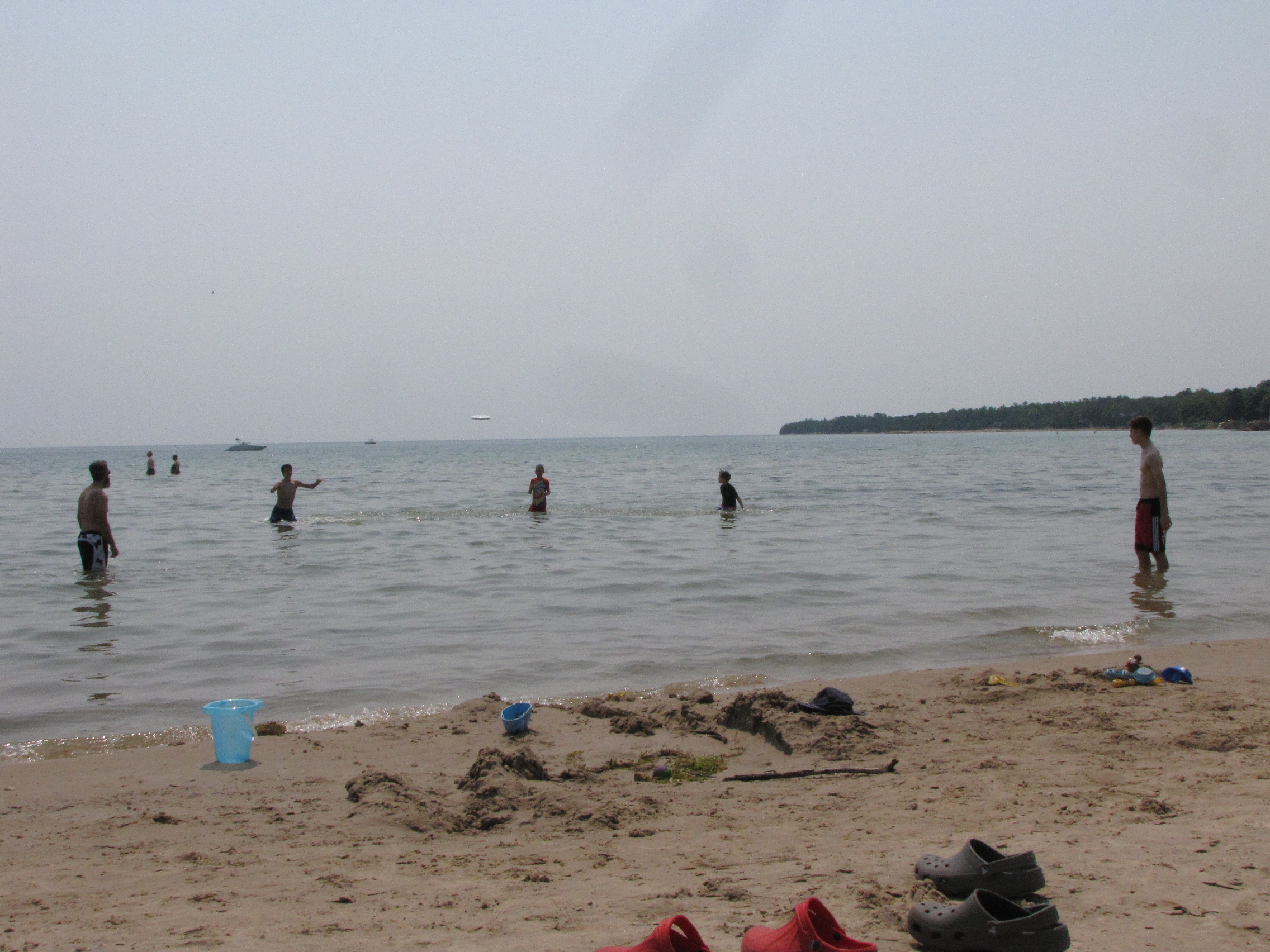 Throwing the frisbee at Ridges Beach in Baileys Harbor.