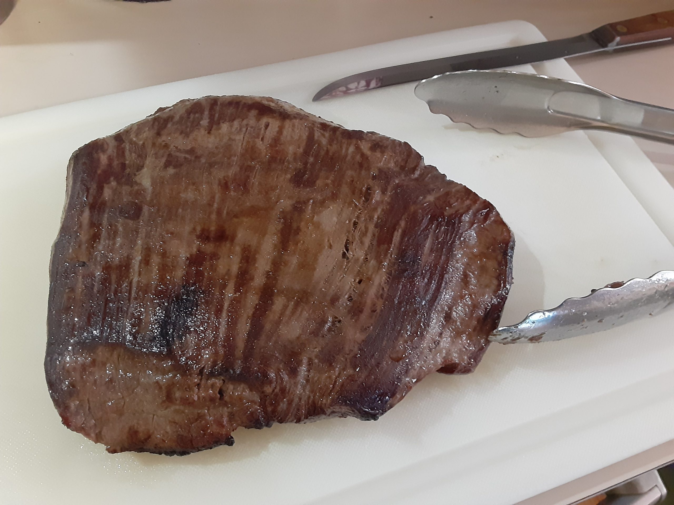 Remove steak from broiler pan and place on cutting board. Let rest for 5-10 minutes so juices reabsorb and you don’t bleed the meat.